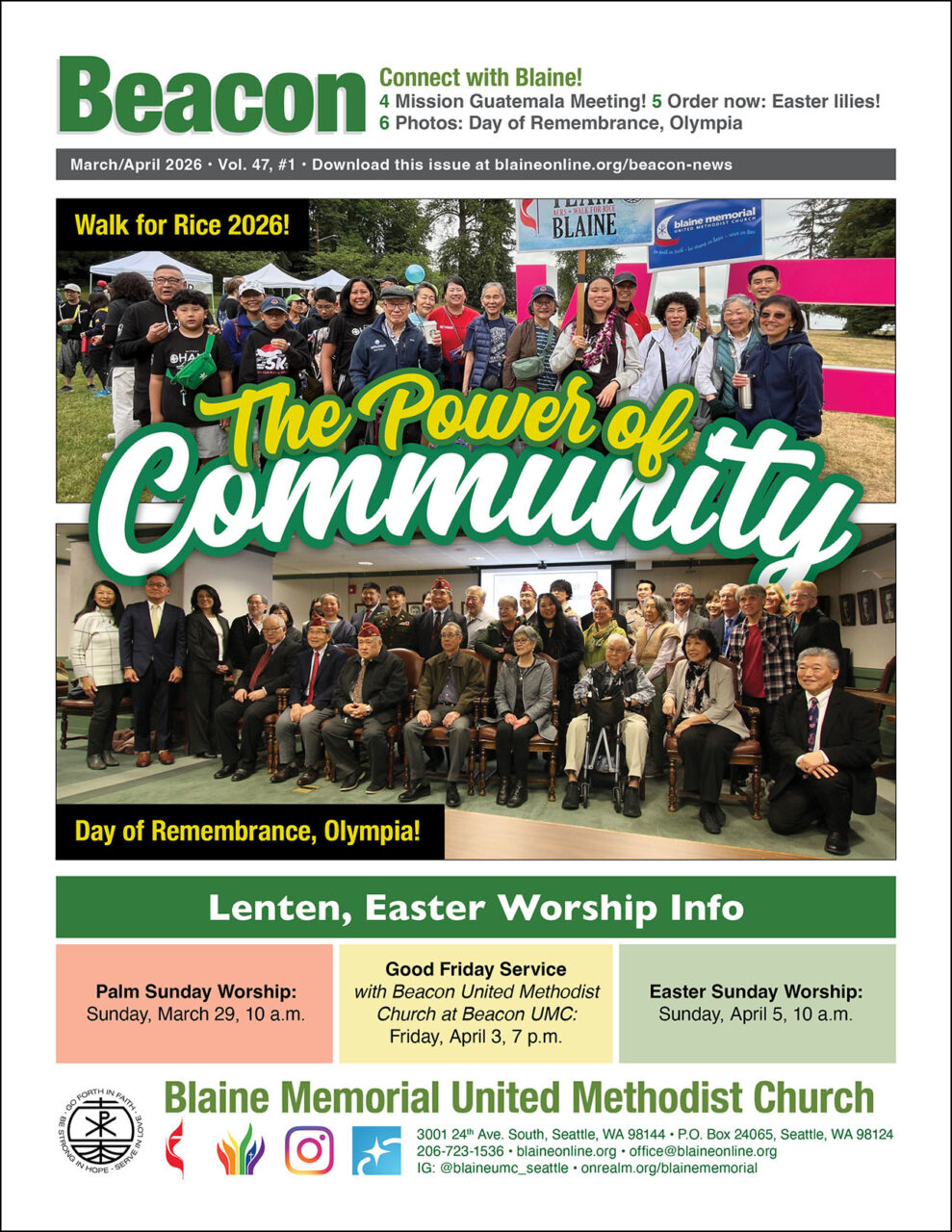 Our monthly collection of ministry stories can be found in the Beacon. Happenings, Faith & Ministries, Visions, and Connections can be enjoyed through our PDF versions of the newsletter. If you would like to subscribe to a printed version, contact the Church Office for more information.