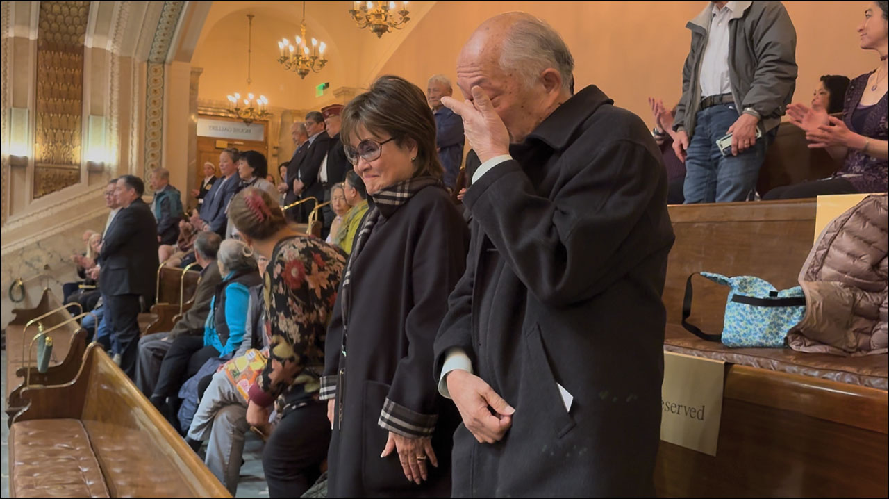 Penny and Frank Fukui were among those who were forcibly relocated and incarcerated during World War II and were recognized by the speaker and other legislators at the Capitol Building.