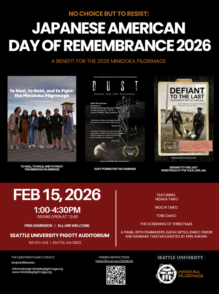 Seattle University and the Minidoka Pilgrimage Planning Committee invite you to the 2026 Day of Remembrance, “No Choice but to Resist: EO 9066 Japanese American Day of Remembrance,” on Sunday, Feb. 15, 2026.
